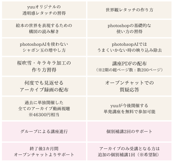 アーカイブ配信と講座PDF、オープンチャットによる質問で丁寧にサポートいたしますのでご安心ください。